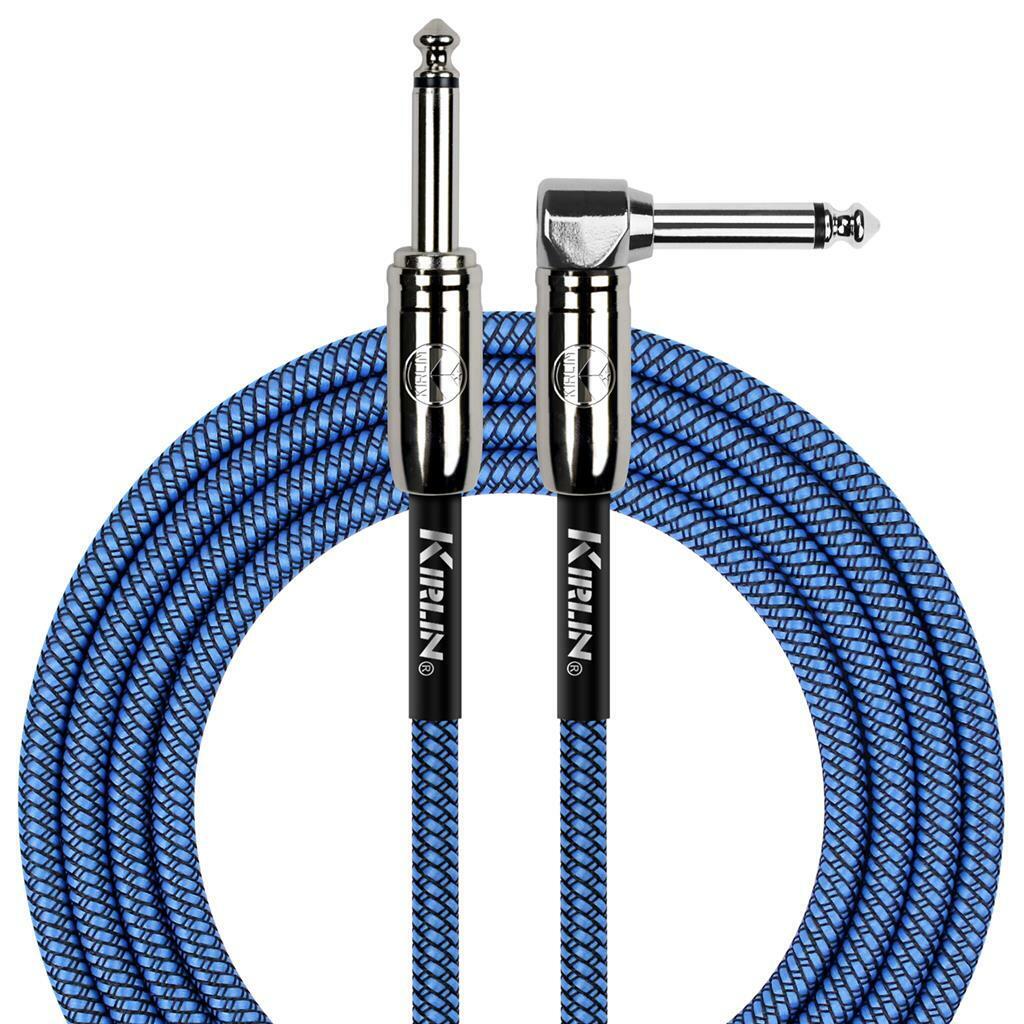 KIRLIN 20 FOOT FABRIC COVERED GUITAR / INSTRUMENT LEAD with Straight to Right Angle Jack Plugs